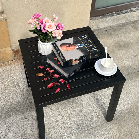If you want to sit out on the patio and enjoy a gorgeous cup of coffee or tea in the morning, afternoon, or evening, this lovely powder-coated metal table is going to be a wonderful choice for your cup. It’s just at the right height for you to rest your cup on and pick up again, and it’s still got room for a sweet treat and decorations.