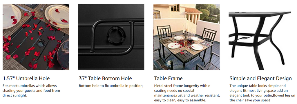 MEOOEM Outdoor Patio Dining Table are designed for a happy and cozy family-together time.This patio metal dining table has many amazing designs: