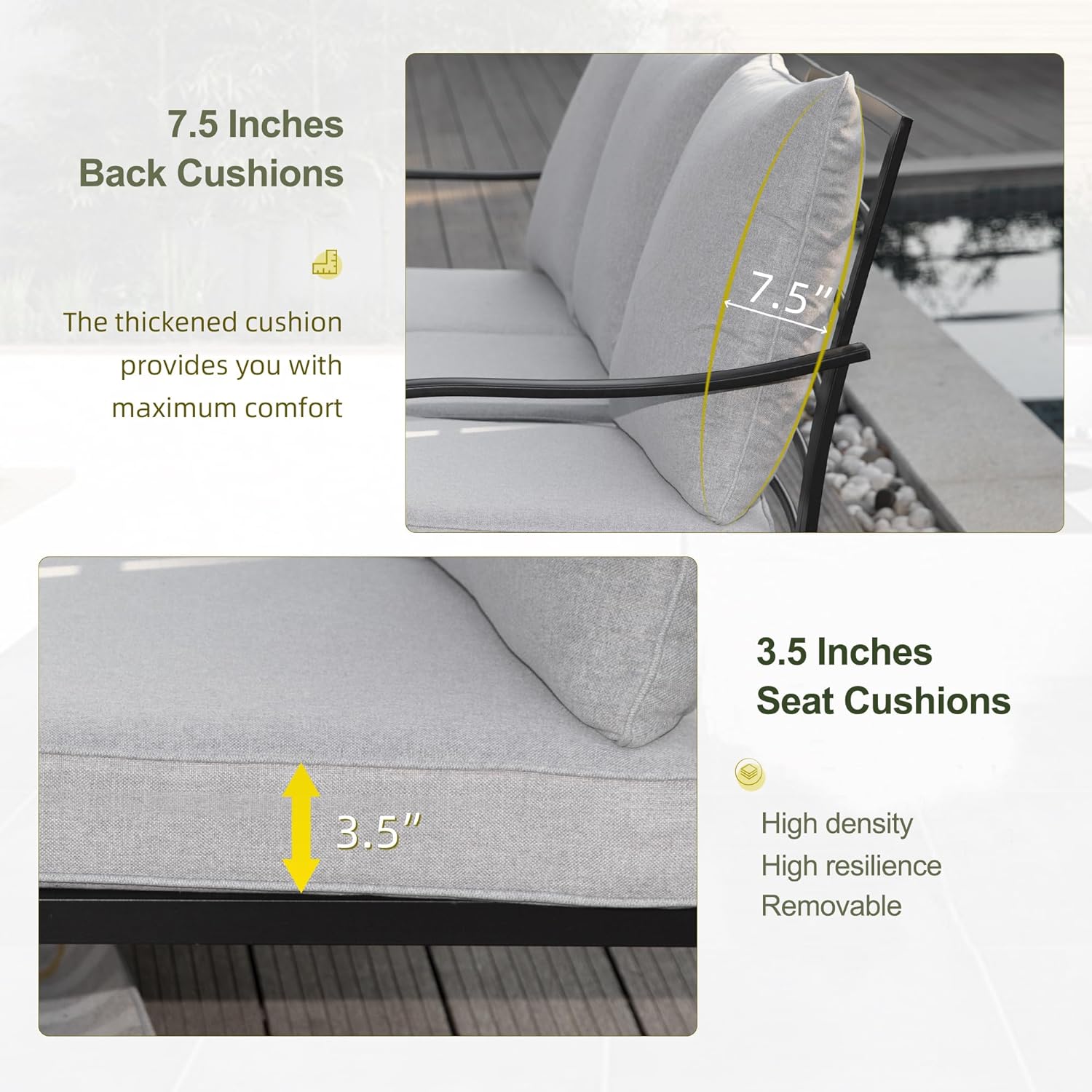 - ✦Upgrade Comforatble Cushions - Our cushion cover is made of upgraded Olefin fabric. It's colorfastness and anti-aging, water-, spill- and UV-resistant. This outdoor conversation set comes with 7.5" thick back cushions and 3.5" thick seat cushions, which are soft and high resilient to offer you utmost comfort, you can rest youself hugged by this loveseat.