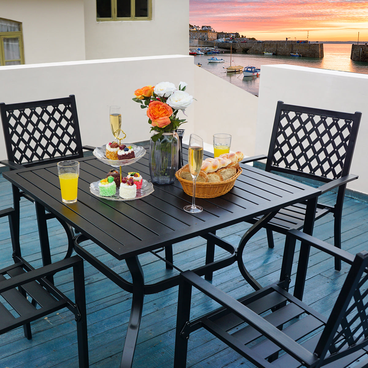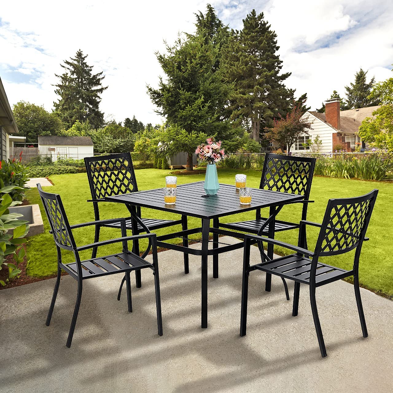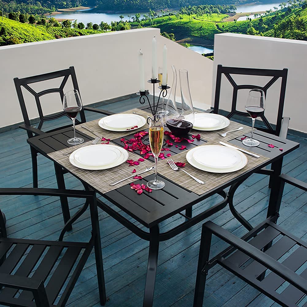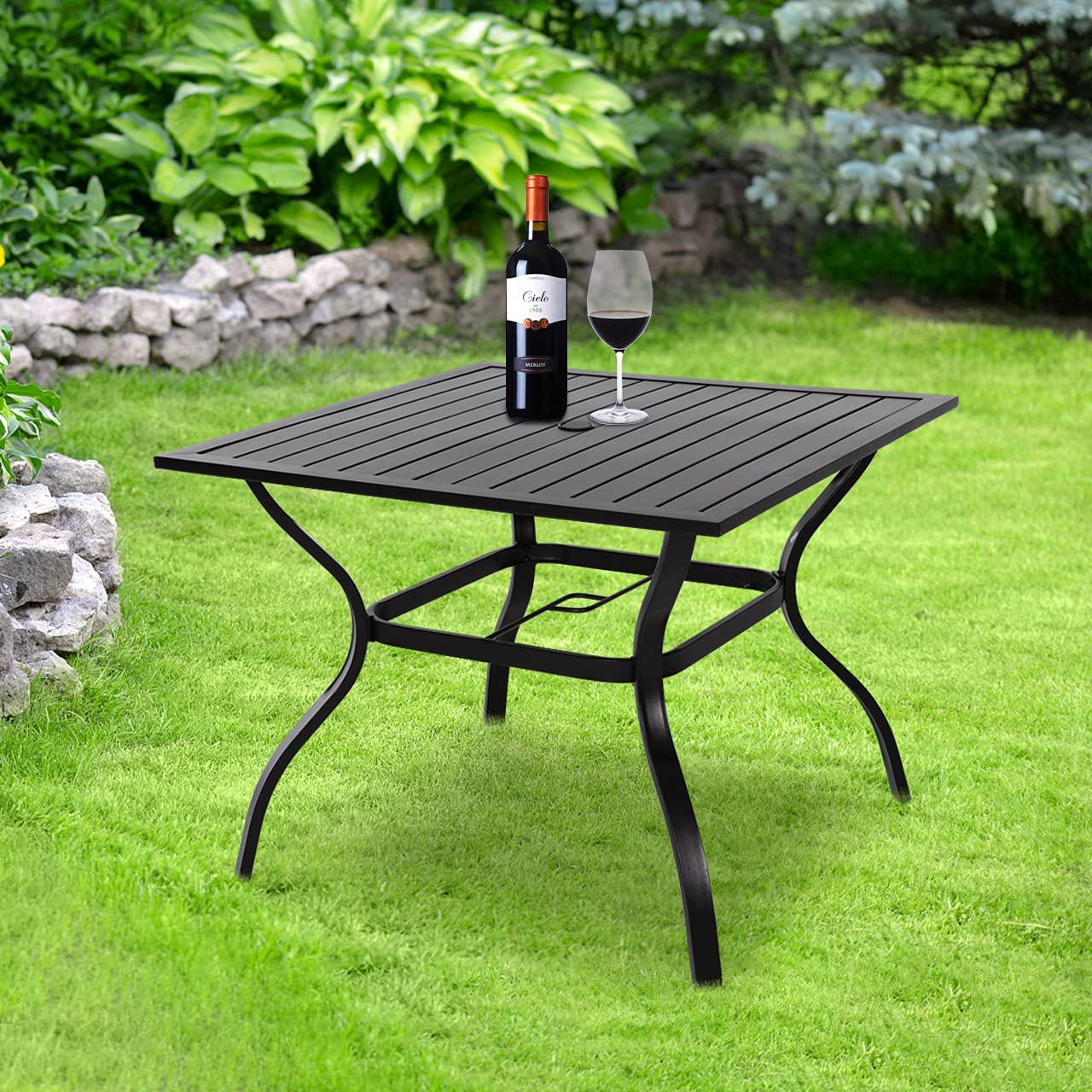 - ⛱【Stylish Design】:Stylish Design slatted metal tabletop makes it a fantastic addition to your porch garden ,backyard .It provides comfortable dining and chatting environment
