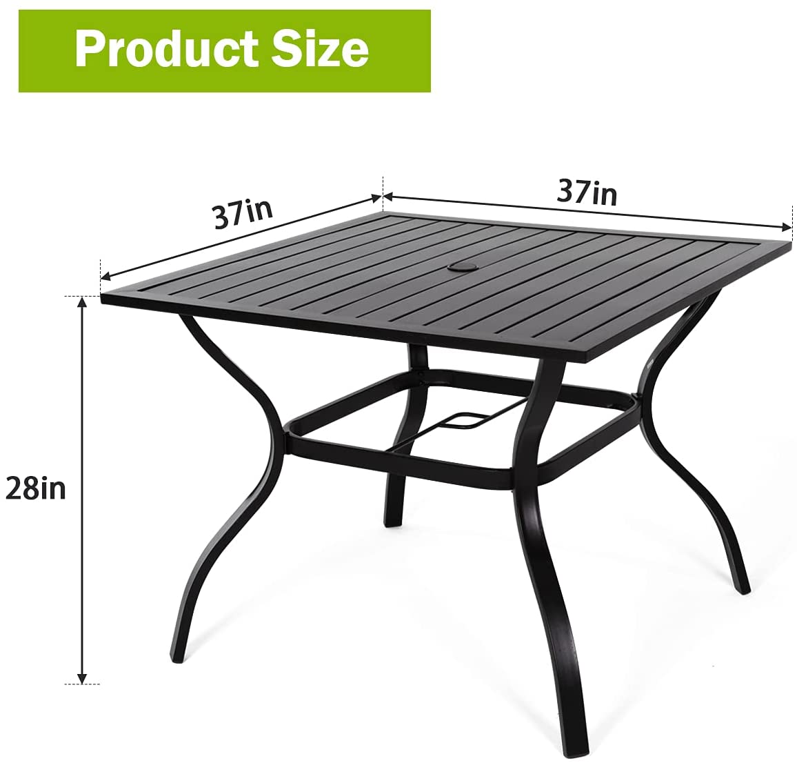 - ⛱【Dimensions】:Outdoor Patio Dining Table Size: L 37" x W 37" x H 28"; Diameter of umbrella hole:1.57"