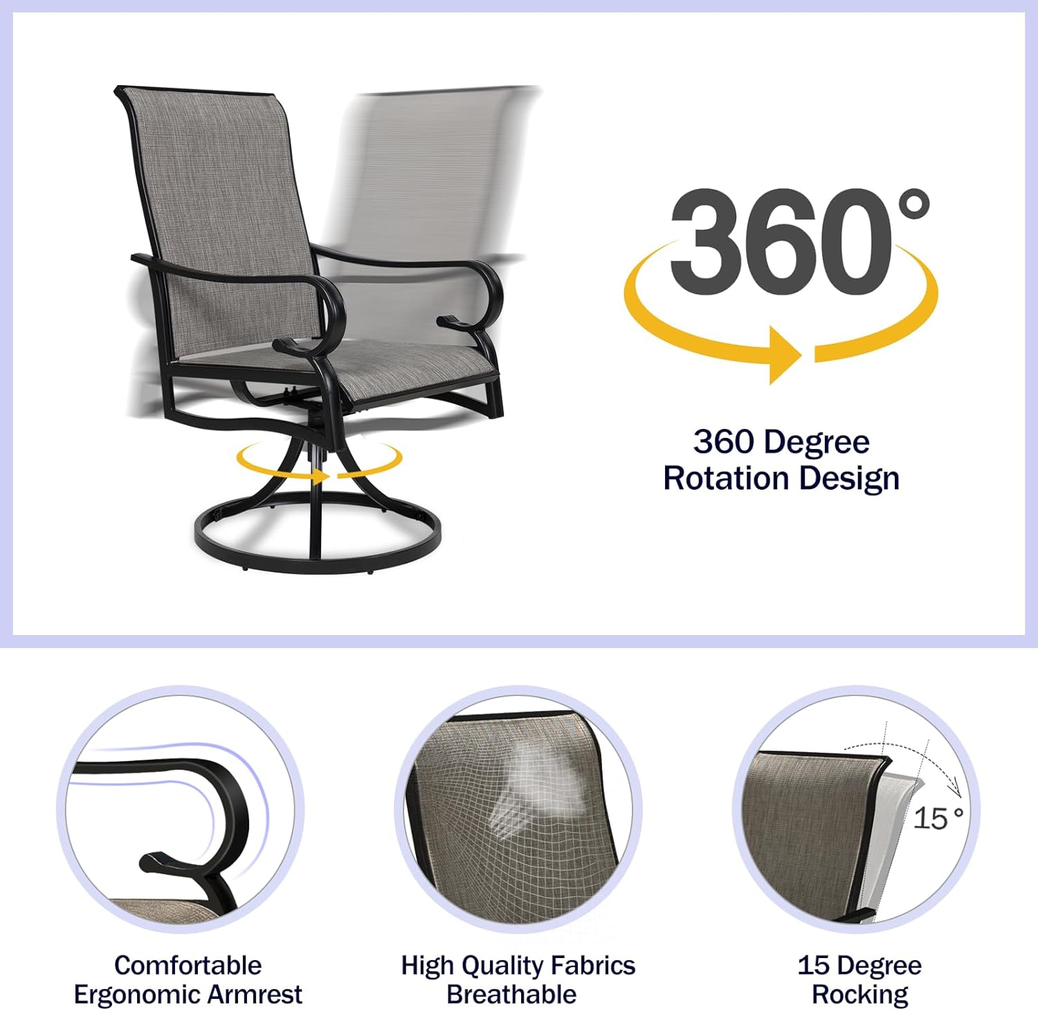 - ★Patio Dining Chairs - Smooth 360 degrees Swivelling seat for easy turning around when dining or chatting with your family. slight rocking design makes you feel comfortable; high back and ergonomic deisng can best support your head and body, so that you can completely relax yourself while sitting on this chair. Sturdy chairs can support 300 lbs.