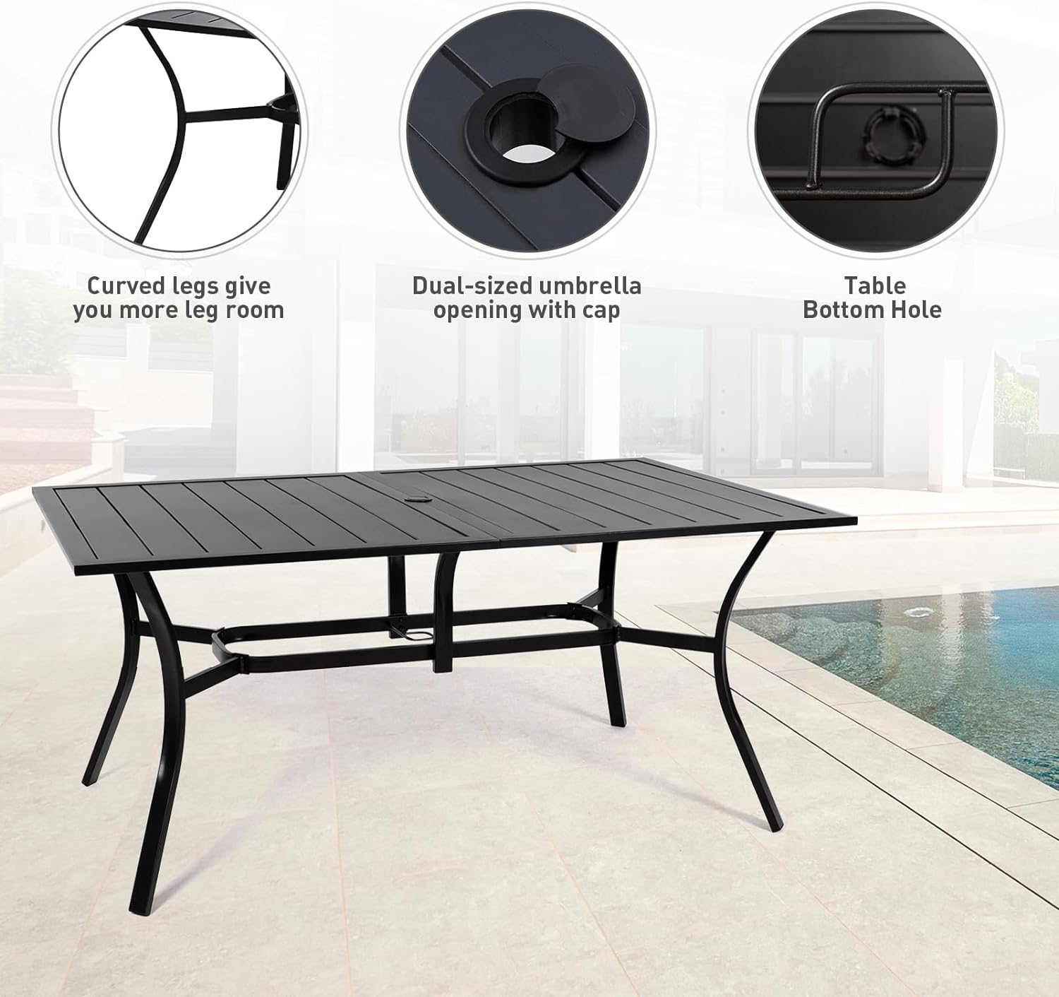 - ★Outdoor Dining Table - This dining table for outdoor is designed extra long, 63" long that can hold 6 seats roomly. Featured with a hole in the middle tabletop can fit 1.57" and 1.9" patio umbrella pole. So you can fully enjoy your afternoon time or dinner time with this patio dining set.