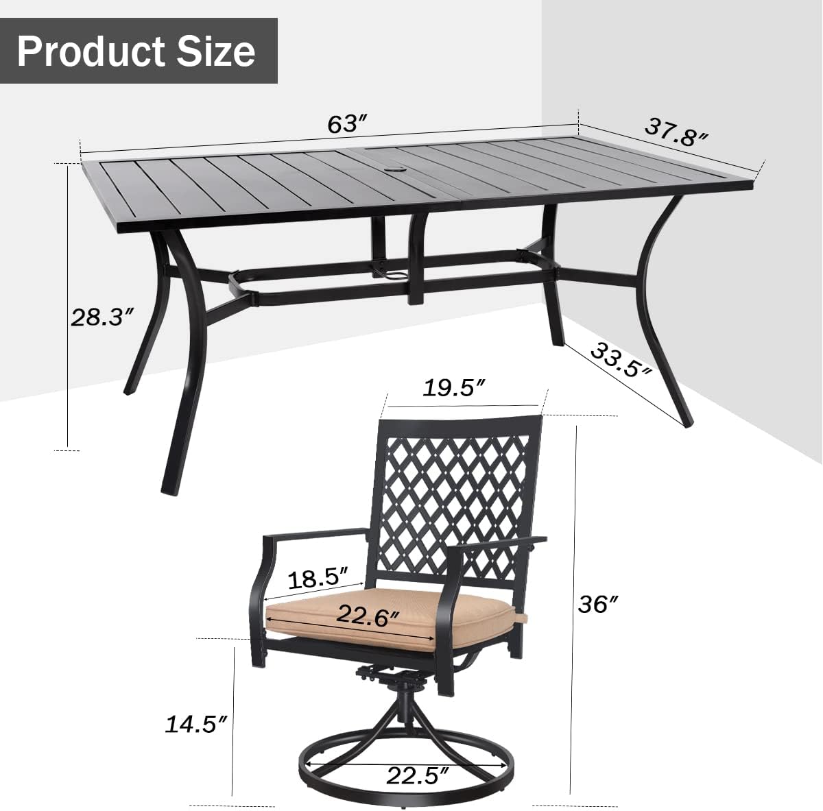 7-Piece Patio Dining Sets with Cushions, 6 Swivel Chairs & 63" Rect Table (1.57" Umbrella Hole)