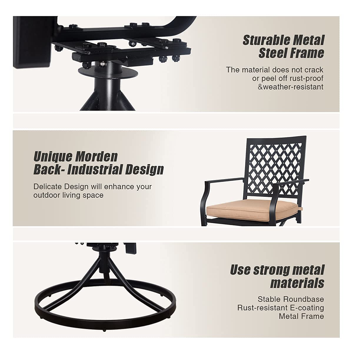- 【6 Metal Swivel Chairs】Special 360-degree swivel design for this patio metal dining chairs. Convenient for you to rotate in any direction without moving noise. Enjoy the extra pleasure with friends outdoors.