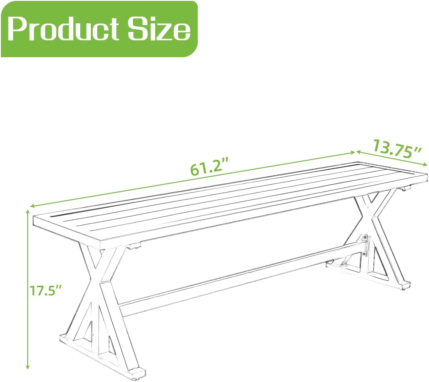 - ★【LONG BENCH for 3-PERSON】Dimensions: 61.2" L x 14" W x 17.5" H, Long bench seats up to 3 people roomly.