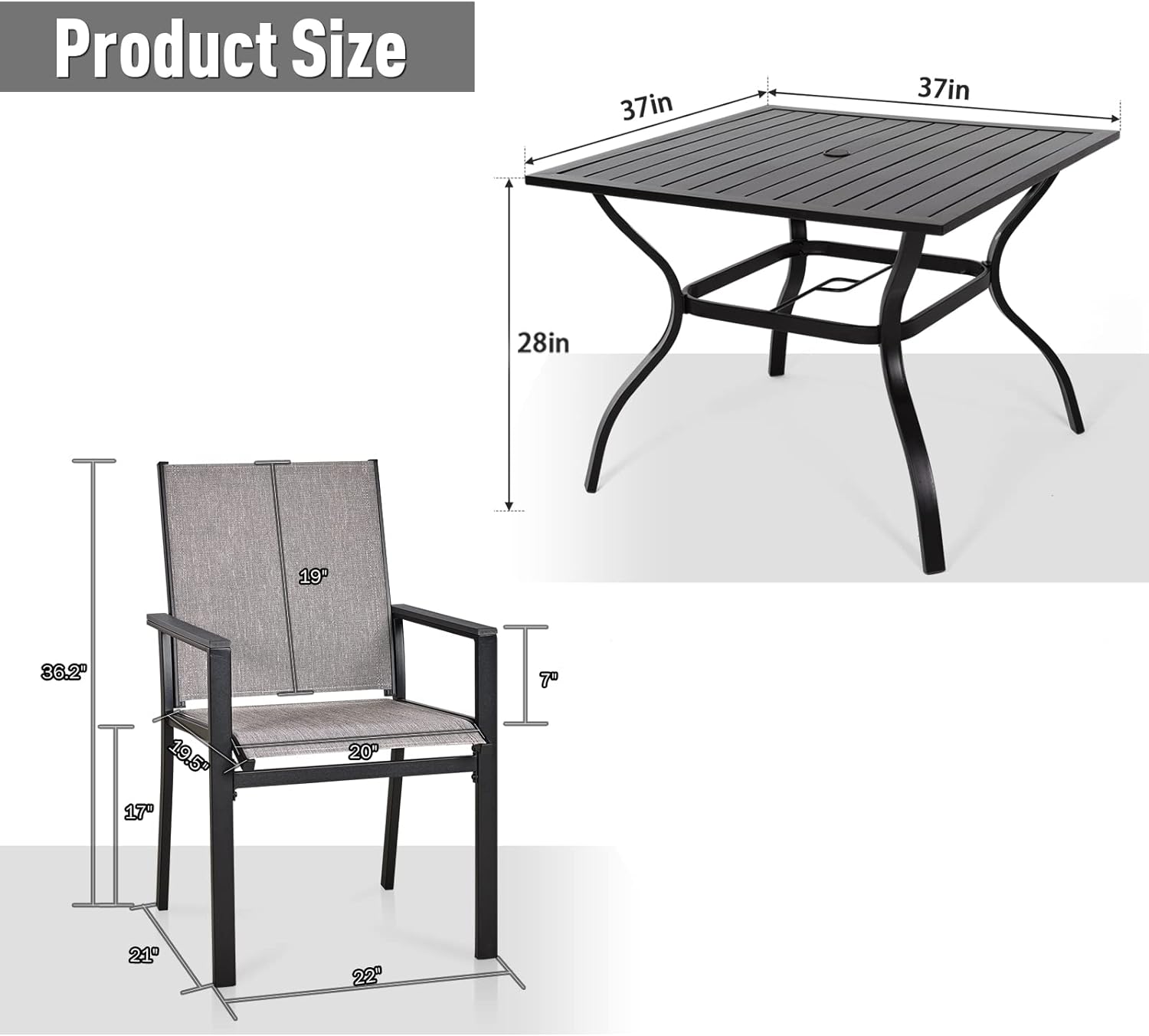 - ➤Square Patio Dining Table for 4-person - 37" square outdoor dinning table with a 1.57" hole for patio umbrella, sturdy table top and frame last for long time and easy to clean.