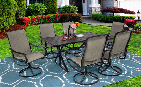 - ★【Outdoor Dining Set for 6】This patio furniture set for includes 1 outdoor rectangle table and 6 swivel dining chairs for dining in the garden, patio, porch, backyard, lawn, bistro, or cafe.