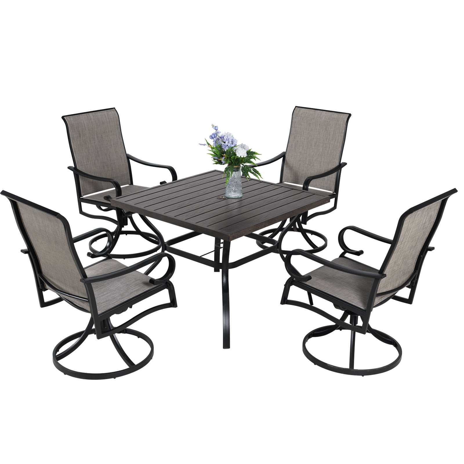 5-Piece Swivel Patio Dining Set, 4 High Back Chairs and Square Wood-Like Grain Table (1.57" Umbrella Hole)